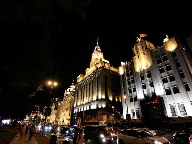 振り返るとバンドの由緒あるライトアップされた建物。ヨーロッパをも感じさせてくれます。どちらも見応えがあり同時に見ることができる陳毅広場は必ず訪れるべき場所だと思います。