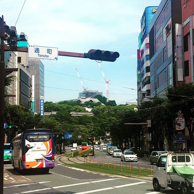 まずは市内を散策します。空港リムジンバスを降りて、まず目に入ったのが復旧工事が進む「熊本城」です。