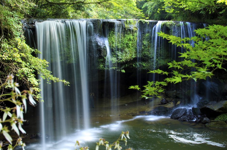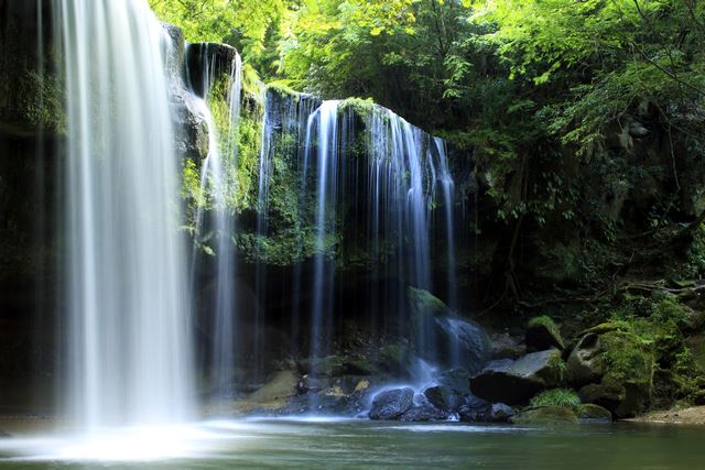 水のカーテンが心地よく、合間から見える緑の木々に癒されました。
