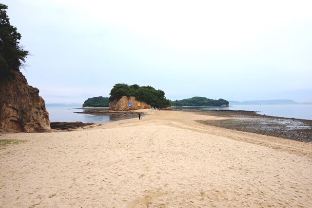 潮が引くとあらわれる砂の道。「大切な人と手をつないで渡ると、願いが叶う」というロマンチックな場所です。