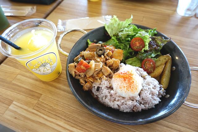 先ほどの小豆島オリーブ園のオリーブ畑と繋がっているのが、「道の駅 小豆島オリーブ公園」。Cafe OLIVAZ 小豆島のオリーブオイルを使用したチリンドロンライスを頂きます。