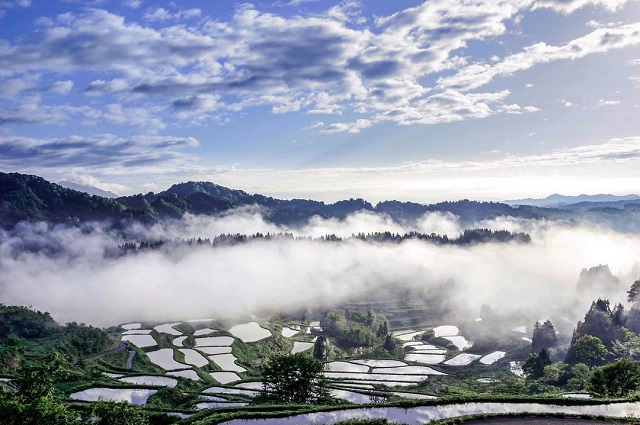 美しい日本の原風景!「日本の里100選」に選ばれた星峠の棚田。初秋は豊かに実った稲穂が黄金色に輝きます。