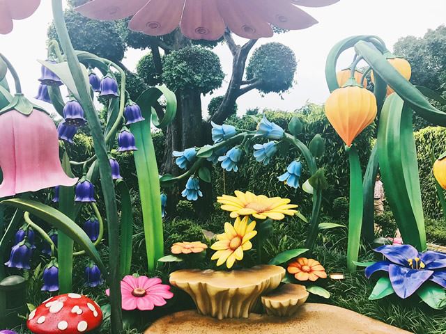 途中にはお花溢れるフォトスポットもあります。ここは普段ティンカーベルとグリーティング出来る場所です。