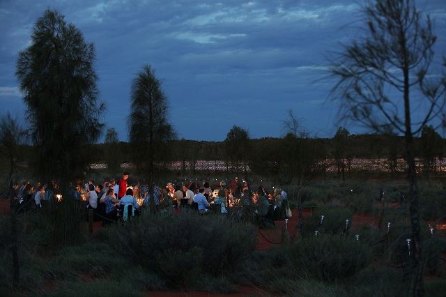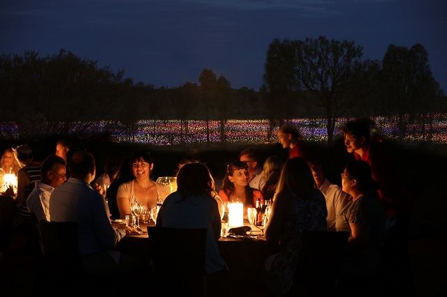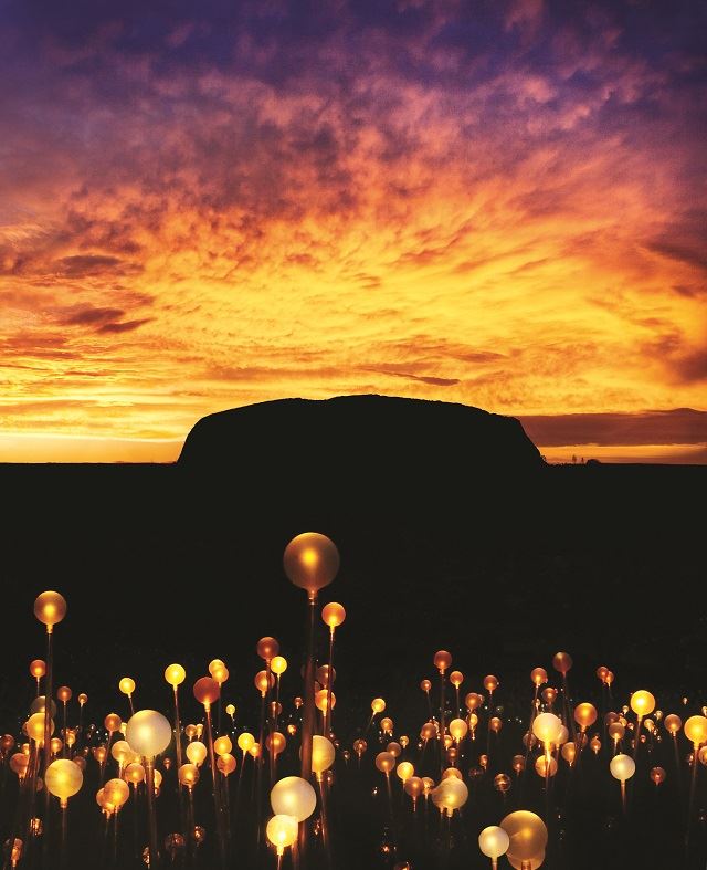 彼のイルミネーションの中でも過去最大規模で、エアーズロック周辺の砂漠に、 5万以上もの手作りの球状のガラスに光が灯されます。