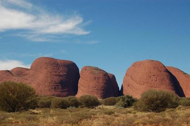 ウルルから西へ約50キロの場所に位置するのが、36個の奇岩が連なった不思議な景観で知られる「カタ・ジュタ」と呼ばれるマウントオルガです。5億年もの昔から浸食を続けて形成された円形ドーム状の奇岩群で、先住民アナング族の聖地として崇拝されてきました。また有名な映画の舞台にもなったと言われている風の谷も実際に足を運ぶと想像を絶するスケールです。