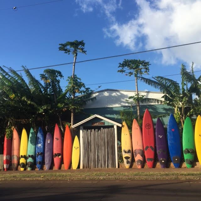 小さな街だけど、オールドハワイの雰囲気が大好き。オーガニックなものを扱うお店も多く、看板の向こう側にレインボー発見♡