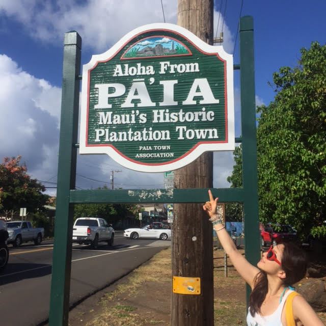 マウイのお洒落タウンPAIA。カフルイ空港から車で15分くらいの場所です。マウイの街にはそれぞれ看板が立ってて、