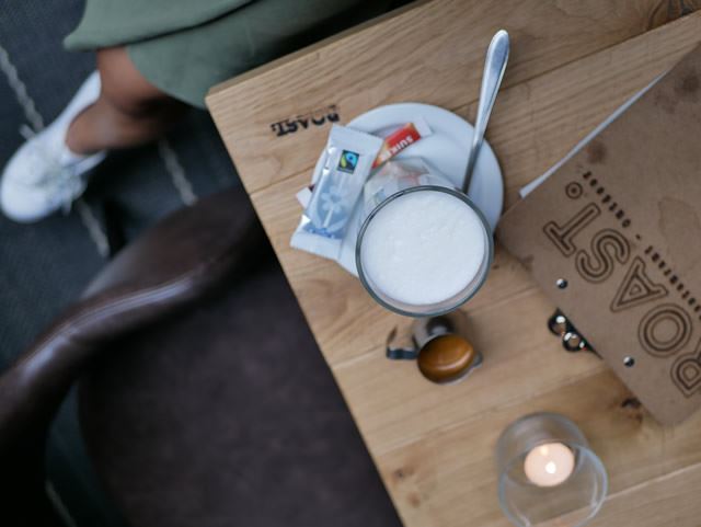 ここのカフェラテは透明の背の高いコップ。珍しいですよね。