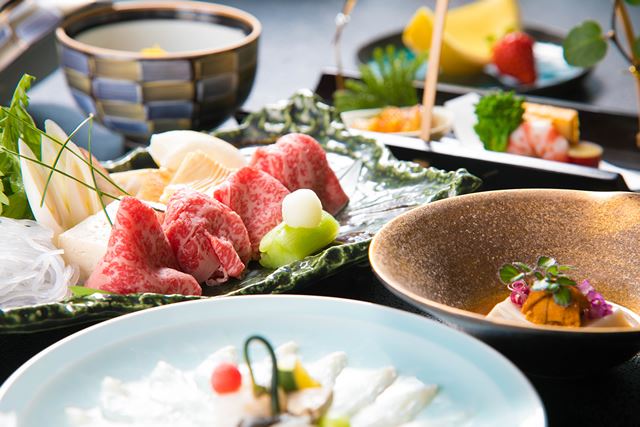夕食では、まろやかで甘み深い「豊後牛」を味わうことができます。