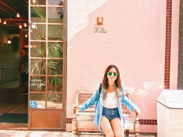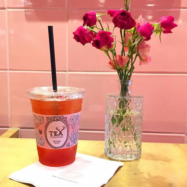 パステルピンクの壁が可愛らしいこのカフェは、ロサンゼルスの流行発信地であるメルローズにあります。