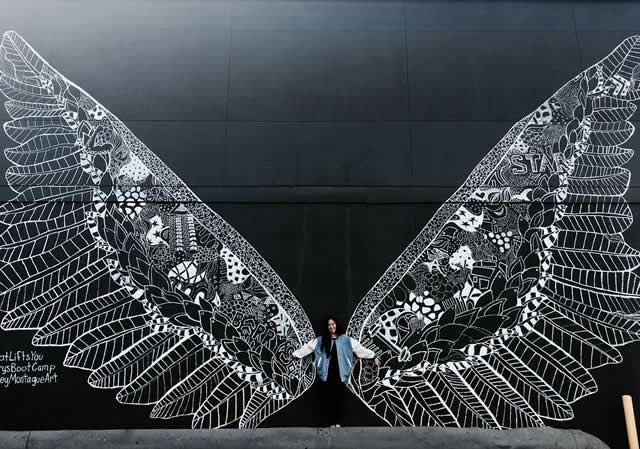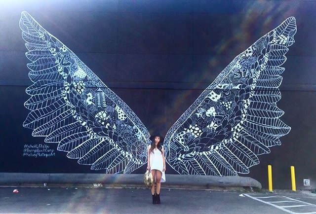 そのベニスにある店舗には巨大な羽根のウォールアートがあります。