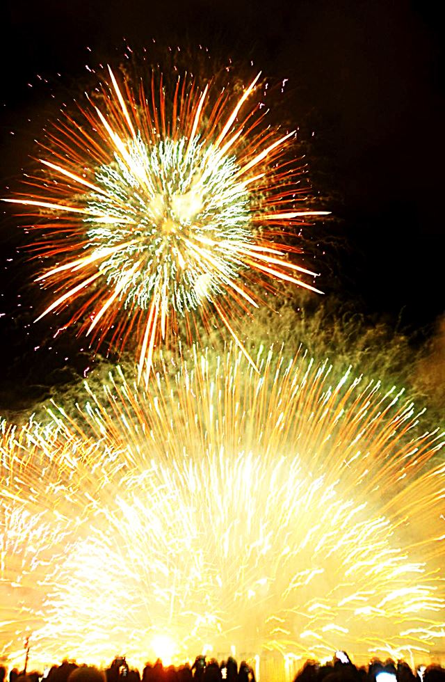 その2. ナイアガラやワイドスターマインは、空いっぱいに様々な形の花火が打上がるので「横向き」に。二枚目は新潟県の長岡まつり大花火大会。