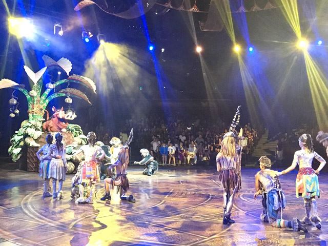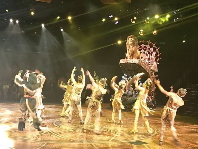 映画『ライオン・キング』をテーマに生歌でアクロバットなパフォーマンスが見られるミュージカルショー。室内の円形ステージでどこに座っても観賞しやすく、圧巻のファイヤーダンスが間近で見られたり、キャストとハイタッチをし一体感のあるステージです。