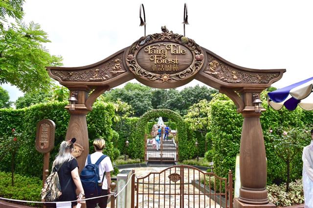 進んでいくとディズニープリンセスのストーリーと仕掛けが施されたお城が建っています。『塔の上のラプンツェル』、『白雪姫』と『七人のこびと』、『美女と野獣』、『シンデレラ』、『リトル・マーメイド』などのスーリーが楽しめるので、次はどのストーリーなのかワクワクしながら進み、お目当ての『美女と野獣』エリアへ!