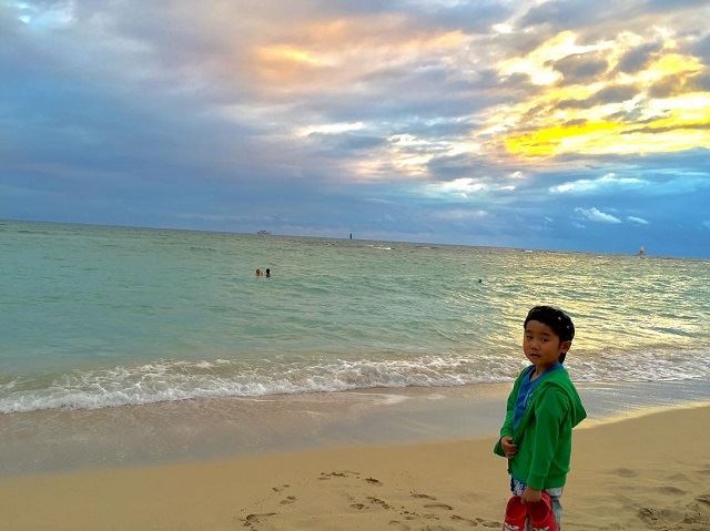写真提供:@a_k_i_pon_さん【投稿コメント】ワイキキビーチ 息子と曇り空のサンセット5.カカアコ