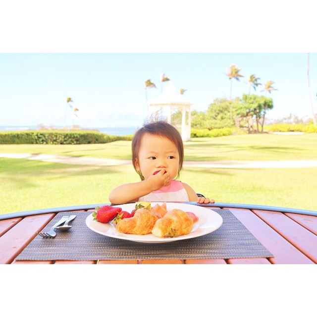 写真提供:@tomo.m.yさん【投稿コメント】カハラリゾートの中にあるプルメリア・ビーチハウス。写真のように美しい海を眺めながら、ブッフェ形式の朝食を楽しめます:オススメはパンケーキとオムレツ。もちもち弾力があるパンケーキは、くるくるとロールされた状態でバター×メープルシロップのソースと絡まって…何本でも食べられちゃいます 笑 あみちゃんも虜になってました:オムレツは好きな具をお皿に乗せてシェフに渡すと眼の前で調理して熱々を提供してくれるんです あー、思い出しただけで食べたくなる:写真は食べることに必死過ぎるムスメ。険しい顔だけど、実際には「んまっ!んまっ!yummy!」と真剣な顔しながら連呼しておりました。誰も盗らないってば 笑