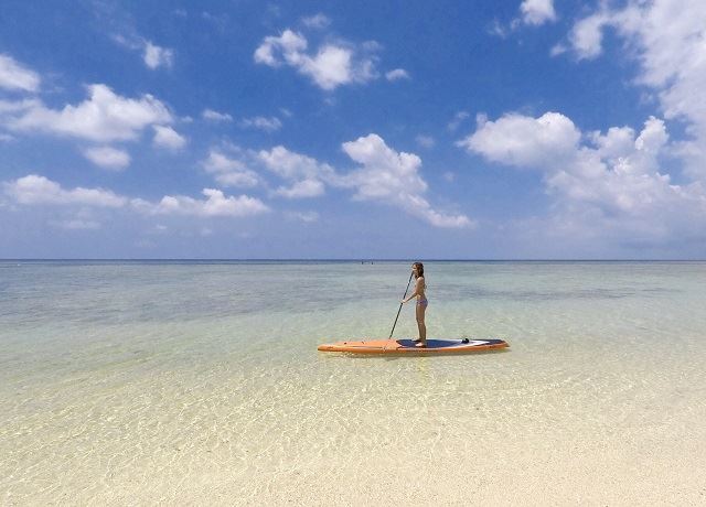 透き通った海が広がる米原ビーチでは事前にSUPツアーを申し込