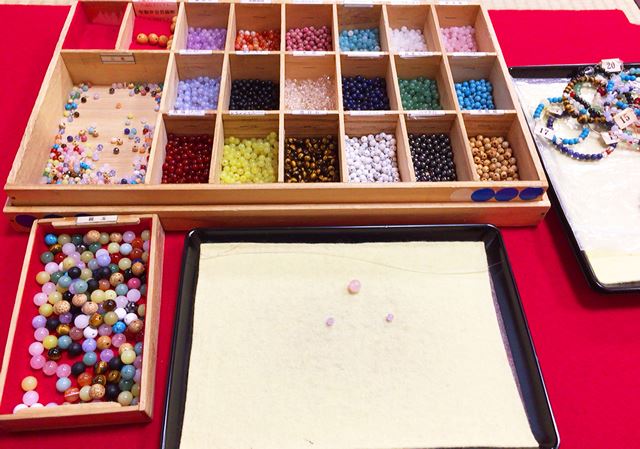 こちらでもうひとつ人気なのが、円通院で祈願、報恩の供養をした天然石を使った数珠作り!たくさんある天然石から1粒1粒、石を選ぶのは、夢中になってしまうほど楽しいです!
