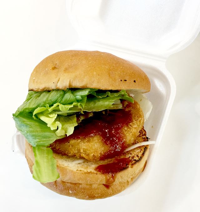 産地直送の海産物が販売されている松島さかな市場では大人気のご当地バーガーが味わえます!その名も「牡蠣バーガー」!