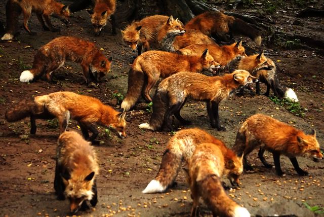 園内には6種類100頭を超えるキツネが放し飼いにされています。