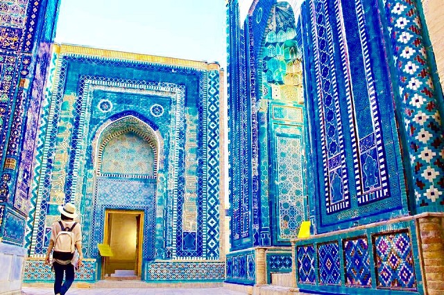 シャーヒ・ズィンダ廟群は11世紀から19世紀までの9世紀の間に作られており、現在では20以上の建造物の集合体となっています。どの廟も青色を基調としタイルで装飾されており、鮮やかな青色の世界を堪能できます。