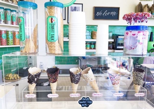 女子なら店内に入った瞬間に目がキラキラしてしまう様なスイーツカウンター♪なんて可愛いのでしょう!!色もパステルカラーで統一されていておしゃれです!こちらのカウンターでは、アイスクリームなどのスイーツが注文できます!コーンが可愛いので、アイスクリームを持ってこのカウンター前で写真を撮ってみてくださいね!