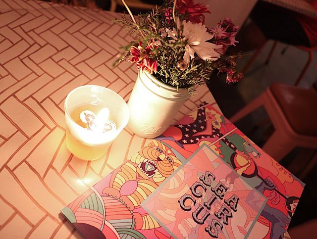 外観がピンクで可愛いカフェです。さっき紹介したKIM SOOのすぐ横にあります。店内も可愛くて夜でも賑わっていました。