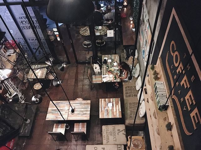 スミニャックにある2階建てのオシャレなカフェ。2階から撮ると雰囲気抜群です。