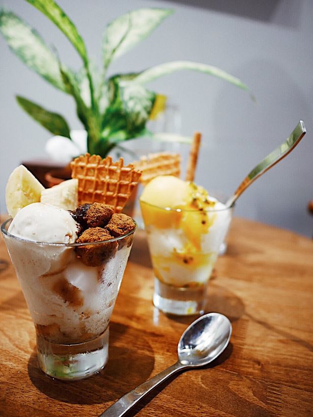 私達が頂いたのは、旗山バナナのパフェ、パッションフルーツのパフェ 各NT.85 (約300円程)。ここは土台のカキ氷がレモン氷かバナナ氷が選べます。(味見もさせてくれますよ!!)