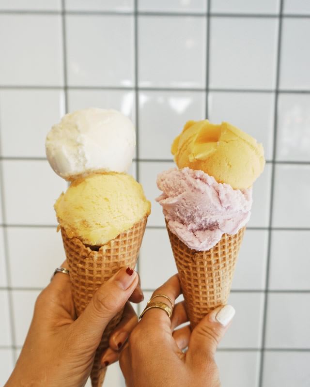 ダブルのコーンを選ぶと、カップに盛られコーンが上に乗っかって渡されるのですが、どうしてもコーンの上に乗せたかったのでこの様に自分でアレンジ♡