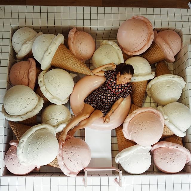 店内の半分はフォトスポットになっており可愛いアイスクリームプールが♡2階から撮ってもらうとこの様なフォトジェニックな写真が撮れます!