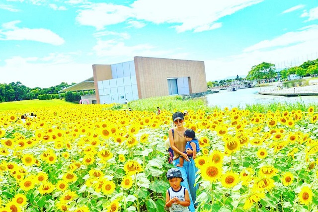 浜名湖に面した浜名湖ガーデンパーク内には、約5万本のひまわりが咲きます。ひまわり迷路もあって、家族連れでも楽しめます!