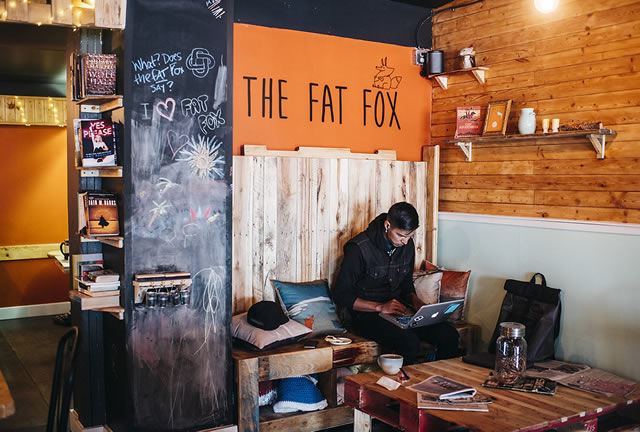イエローナイフにある「The Fat Fox」は、雰囲気抜群のとっても居心地の良いカフェです。