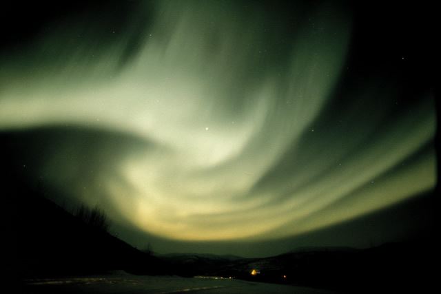 簡単にいうと、太陽で起こった爆発で放出されたプラズマが、地球の磁場に吸い寄せられて起こる現象です。オーロラの強さは、肉眼では見えづらいものから、カーテン状で動きが見られるものまで様々です。オーロラが頻繁に出現するエリアを「オーロラベルト」といい、地球上の磁極(北極圏はグリーンランド)を中心に、北緯65度付近の都市がオーロラベルトにあたります。