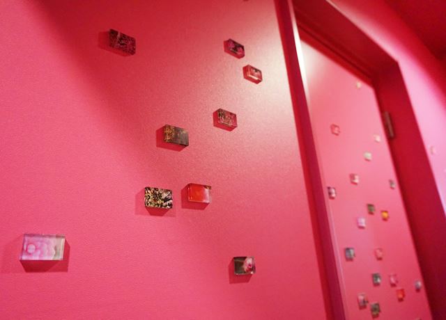 ピンクの壁に貼られたアクリルの作品や、ピンクの電話にTVも必見ですよ!