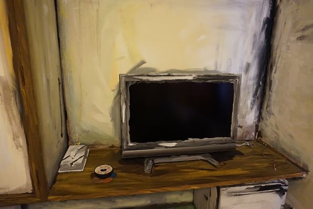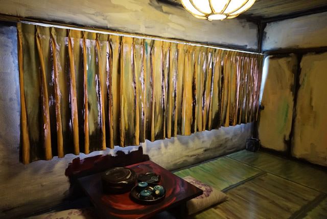 絵の具で塗りたくられた部屋はまるで絵画に中に飛び込んでしまったかのよう。