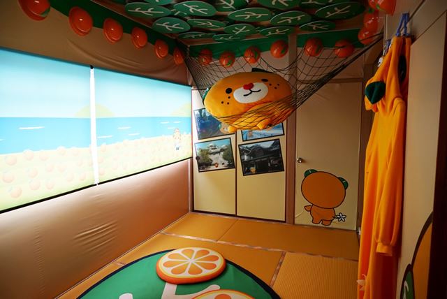 愛媛のご当地キャラクターが使われた「みきゃんルーム」。