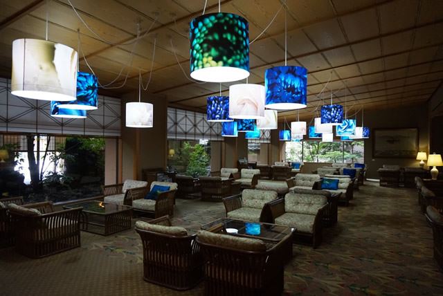 ロビーではオリジナル・ランプシェードが飾られ、幻想的な雰囲気を醸し出しています。