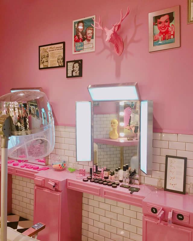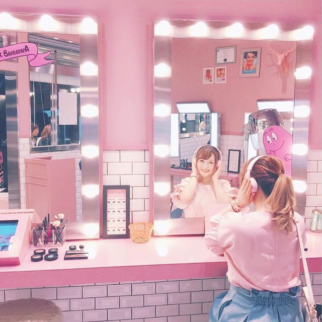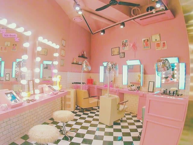 モデル気分を楽しめるベビーピンクのメイクブース!