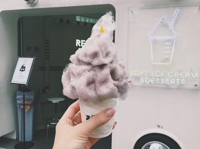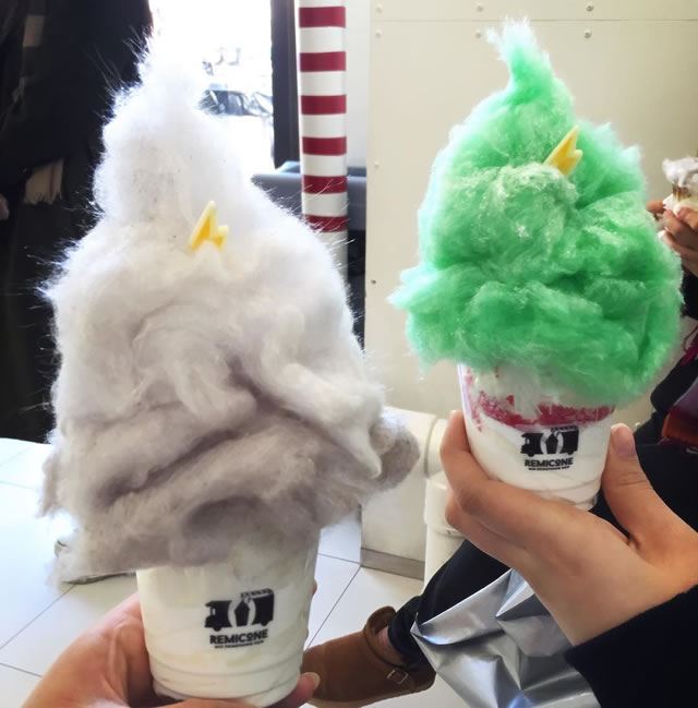 雨雲をイメージした綿あめのソフトが一番人気!ソフトクリームの中には、弾けるキャンディーが入っていて、口の中でパチパチとした食感が楽しいデザートです♪