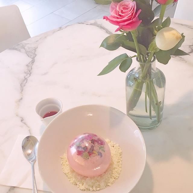 実は大阪発祥のフルーツブランドのソウル支店で、ロールケーキで有名ですが、別名お花カフェと言われるほど、ドリンクやババロアなどのデザートは綺麗なお花で彩られています。女子ならテンションが思わず上がってしまうカフェです。