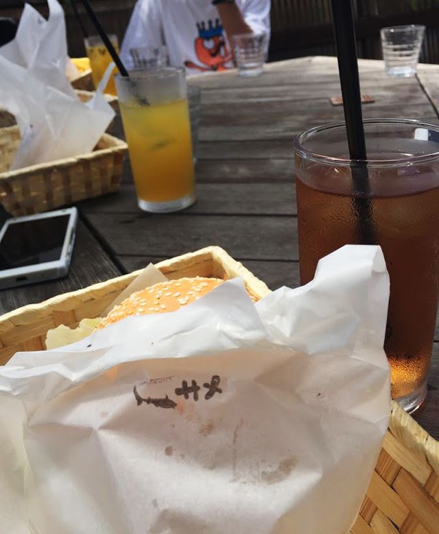 ハンバーガー屋さんではサメバーガーが味わえます。皆さん、やっぱり興味があるのか、ほとんどの方がオーダーするそう!