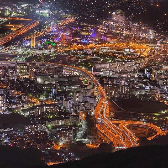 山頂のパノラマ展望台からは北九州市の夜景を見渡すことができます。また、夜景愛好家などコミュニティにおいて「新日本三大夜景」の一つに選定されています。