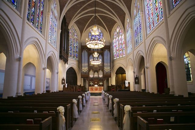 セーヌ川沿いに佇む、1931年に奉納された建物は「燃えるような」という意味を持つプランボワイヤン様式。3375本のパイプによって奏でられる荘厳なパイプオルガンの響きとステンドグラスの圧倒的な美しさの中で永遠を誓います。