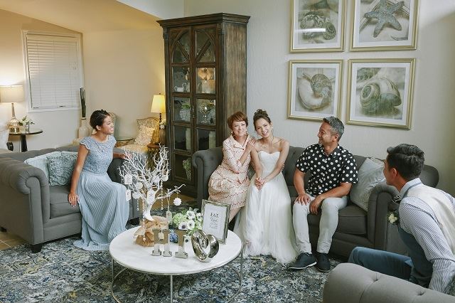 バリの魅力を感じてもらうため、あえてオーシャンビューではなくウブドのようなたくさんの緑に囲まれた式場。一日2組限定の貸切ヴィラには、3つのベッドルームとガラス張りのバーカウンター付きリビング、プールテラスとダイニングが!