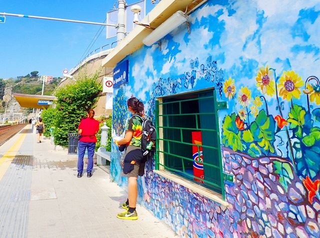 コルニリアは一番小さく船着き場のない唯一の村。そこの駅のウォールアートがかわいい。この中はキオスクでちょっとしたものやお土産など買えます。