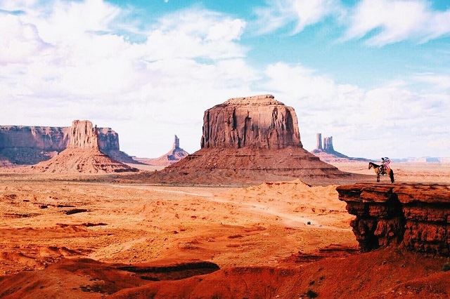 写真提供:@sechim_xdさんご本人コメント(抜粋) Monument Valley ⋆.chinaを探せ.タイミングよくお馬さんが現れて$5で乗せてくれたよ こんなギリギリのところでじーっとしててかしこいなぁ〜〜