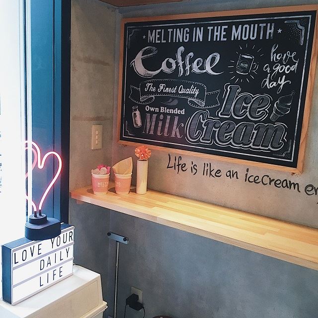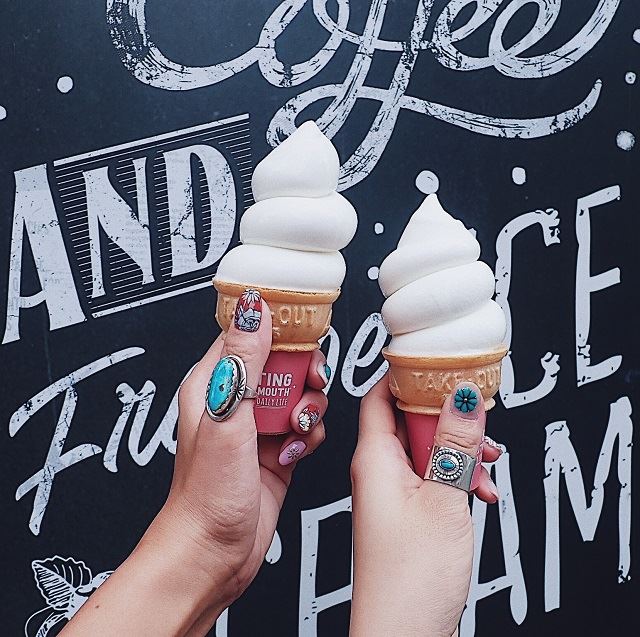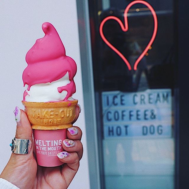 ハートのネオン、ネイル、ソフトクリームの色を合わせて ♪