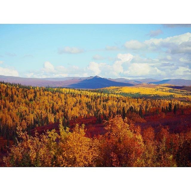 アラスカの黄葉。一年でも短いアラスカの秋、予想していたよりも天気に恵まれ、鮮やかな景色を見れて嬉しい