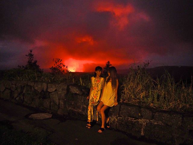 キラウエア火山を眺めながら食事ができるレストラン。息を呑む景色の中での食事はとても不思議な感じ。